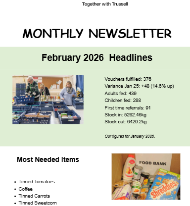 Here is all the news from Vale Foodbank for February 2026. And the headline is, that we start the new year with over 14% increase in demand for food vouchers compared to January 2025. Click this link to view the full HTML version of the newsletter: https://mailchi.mp/vale/february-26-newsletter-from-vale-foodbank Figures from January 2026 Vouchers fulfilled: 376 Variance […]